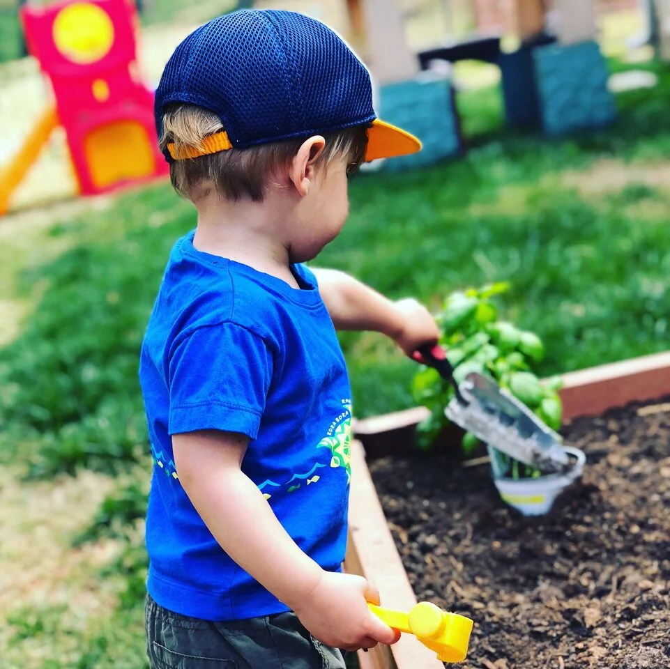 Pre-K gardeners can sow seeds (parents, be cool with crooked rows), water plants (after seedings grow up a bit), and harvest (read: taste).