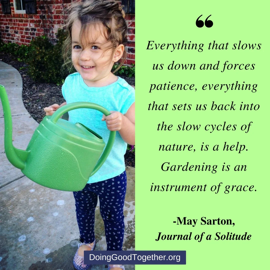 American poet and novelist May Sarton once wrote, " Everything that slows us down and forces patience, everything that sets us back into the slow cycles of nature, is a help. Gardening is an instrument of grace." If we give our children the time and opportunity to spend some of their summer experiencing the slow rhythms of a vegetable garden, they will draw from that grace for a lifetime.