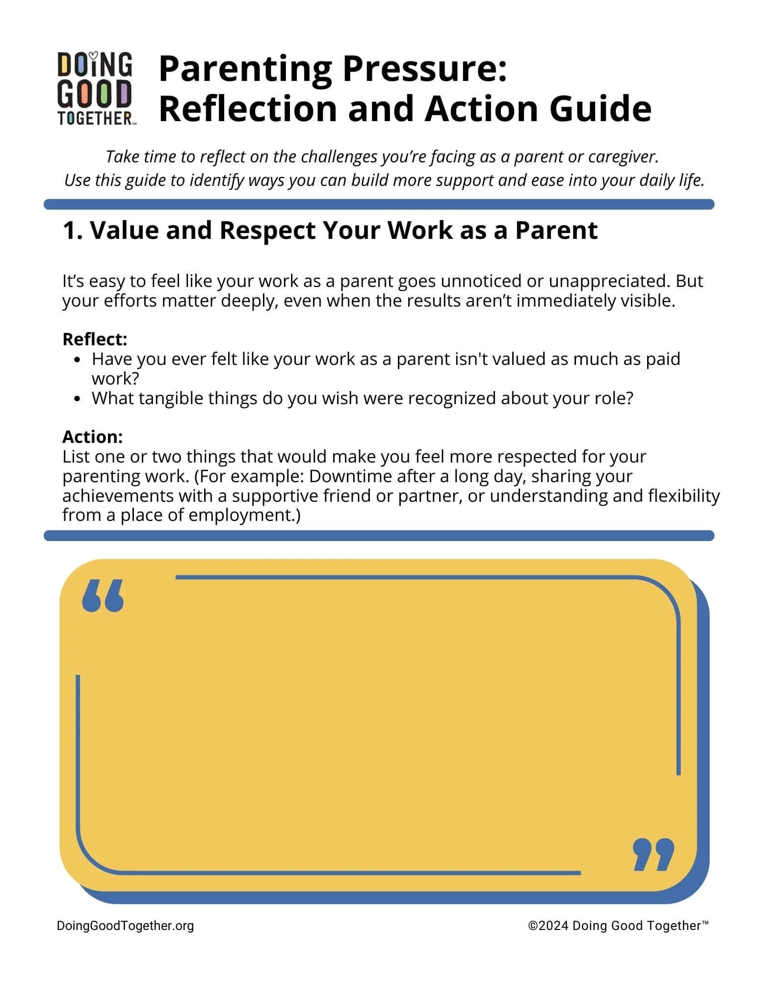 Take time to reflect on the challenges you're facing as a parent or caregiver. Use this FREE download to identify ways you can build more support and ease into your daily life.