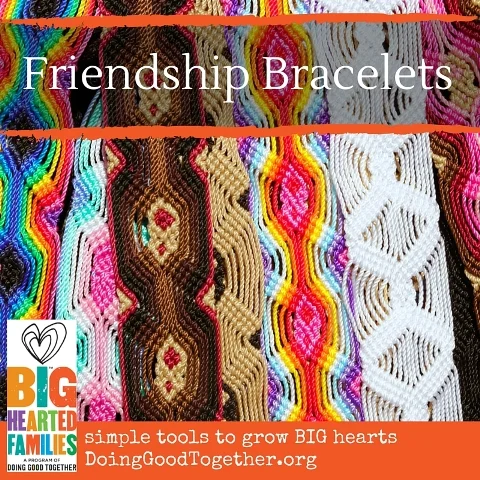 Go beyond bracelets! Create necklaces, rings, key chains or some original token of friendship to give out. We offer lovely silicone "share kindness" bracelets in the Doing Good Together Store, perfect for classroom gifts or party favors. Check them out!