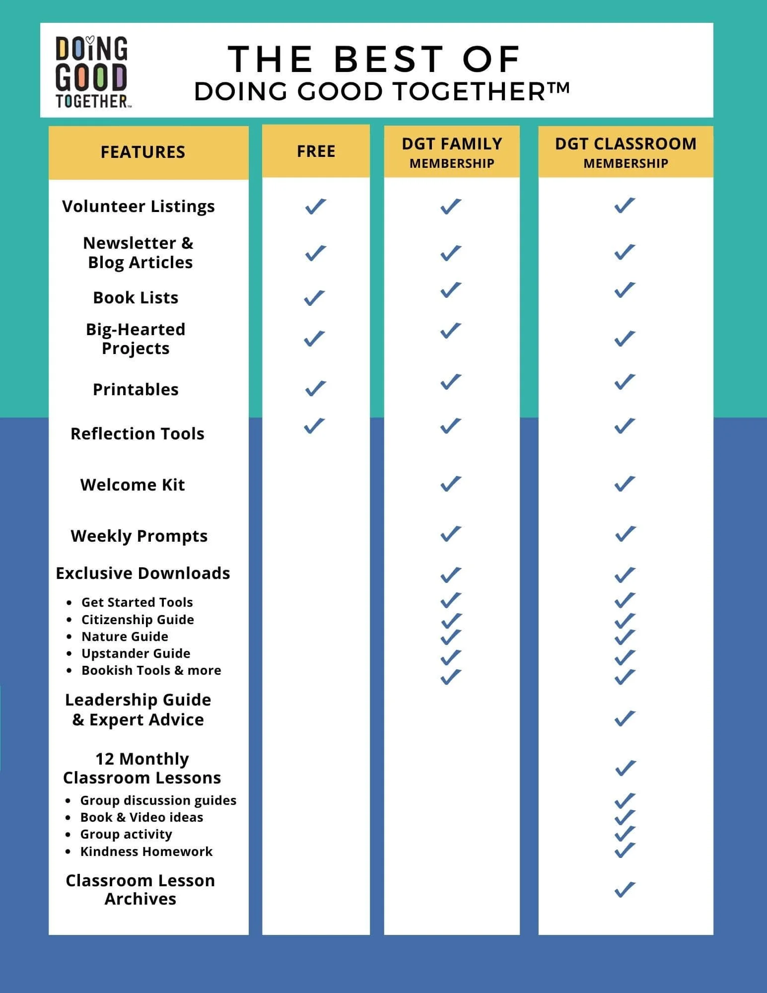 At Doing Good Together, we know that making a difference together is fun, healthy, empowering, and directly improves the lives of others. We’re here to help busy families live kind – Welcome to our exclusive DGT Family membership, full of members-only tools, tips, and activities!
